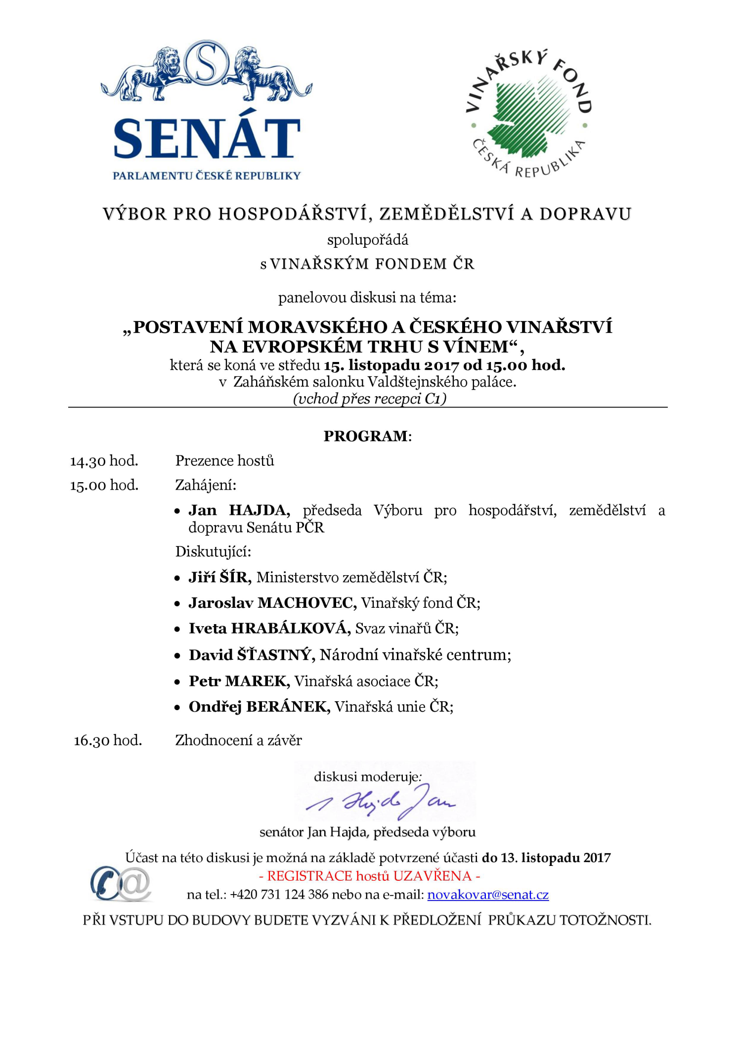 Rád jsem přijal pozvání na panelovou diskusi na téma postavení českých a moravských vinařů na evropském trhu, kterou uspořádal Výbor pro hospodářství, zemědělství a dopravu Senátu ČR ve spolupráci s Vinařským fondem ČR.